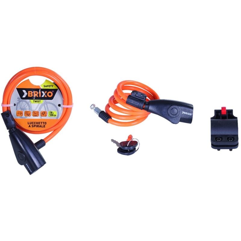 LUCCHETTO A CERCHIO PER CICLI 'TWIST' BRIXO Cavo a spirale in fili di acciaio rivestiti in PVC, chiusura protetta ed automatica mediante semplice pressione. 2 chiavi in dotazione. ø 8x100 cm