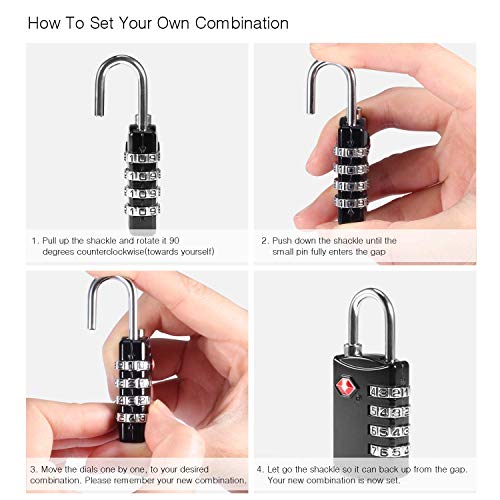2 x Lucchetto Valigia, 2 x Tag Bagaglio Pelle, Yosemy Lucchetto Sicurezza 4 Cifre Combinazione TSA Lucchetto Valigia Lucchetto TSA per USA - Serrature Valigie Bagagli in Nero