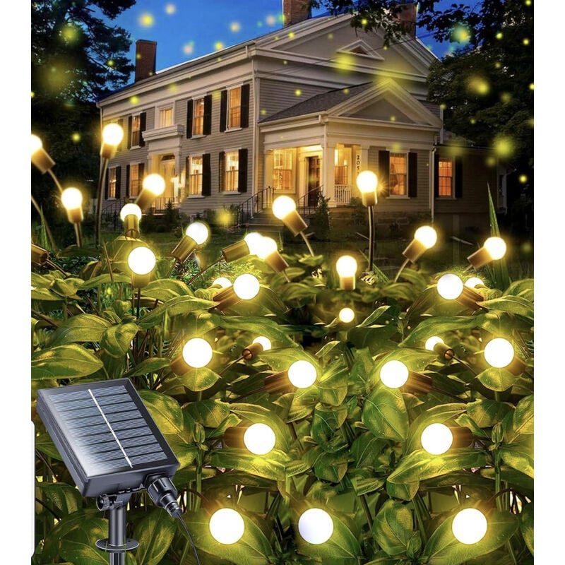 Lucciole Luminose 10 Bulbo a LED natalizie Energia Solare Decorazione Giardino Luce Calda Esalta il tuo giardino con la luce solare da giardino più elegante e durevole! Realizzata in resistente ABS di alta qualità con protezione IP44, questa luce è resistente agli agenti atmosferici e adatta anche a forti venti e pioggia. La sua forma a stella con un supporto in filo morbido dona un tocco di bellezza al tuo patio esterno. Con la luce bianca calda dei 10 LED e un movimento oscillante grazie al vento, il tuo giardino e patio si trasformeranno in spazi caldi e vivaci. Ideale per decorare giardini, cortili e vialetti. Grazie alla protezione IP44, la batteria integrata sigillata garantisce un'illuminazione costante, indipendentemente dalle condizioni meteorologiche. Non hai bisogno di sostituire le batterie e l'installazione è semplice, basta accendere il pulsante sotto il pannello solare e inserire il palo di supporto nel terreno. Questa luce solare è disponibile nella versione luce