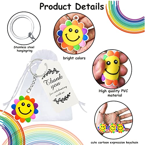 【Il pacchetto include】 30 PCS smiley portachiavi, 30 PCS sacchetti regalo con coulisse e 30 PCS GRAZIE Kraft tag. È il miglior set regalo per bambini.