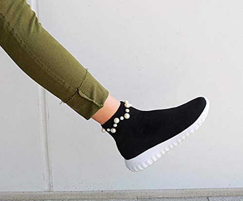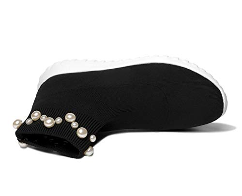 Lucdespo Ladies Casual Shoes Calze Scarpe Pearl Wool Knitted Boots Elastic Scarpe Sportive Calze Stivali Corti Scarpe Hip-Hop. Nero, 39