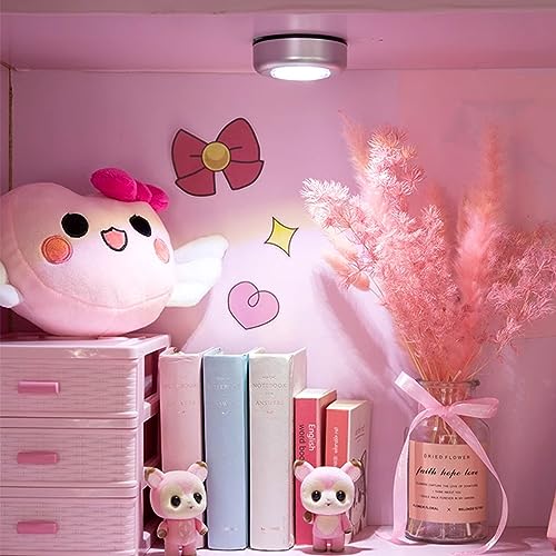 【Lista Imballaggio】 Riceverai 6 pezzi di Luci Touch e 1 sacchetto di stoccaggio, Luci LED Touch con un diametro di 6,5 cm e un'altezza di 2 cm. Luci Armadio è piccolo e leggero, e la borsa di stoccaggio può aiutarti a trasportare Luci Led per Armadio.