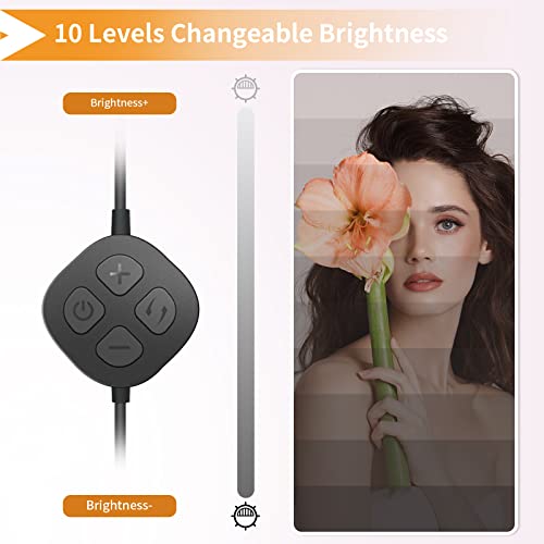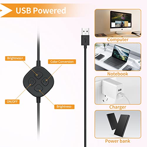 Alimentazione USB: l'interfaccia di ricarica USB può collegare la luce ad anello alla maggior parte dei dispositivi, e può riempire la luce in modo comodo e veloce quando si utilizza un computer portatile/PC/power bank. La lunghezza del cavo USB è di circa 2 metri, in modo da poter facilmente regolare la luminosità della luce ideale al computer.