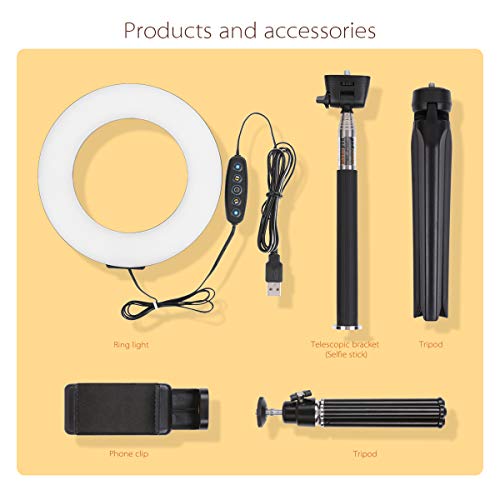 Luce ad Anello LED Ring Light con treppiedi, Gemwon Dimmerabile da 6 pollici con luce ad anello con treppiede per Youtube/Selfie/Fotografia/Live Broadcast
