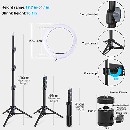 【 2 metodi di installazione: il treppiede riempie la luce con due ripiani a scelta, uno per scrivania e uno per terra. Il treppiede da tavolo per luci vive è 10,5 cm e il treppiede regolabile può estendersi da 130 cm per scatti perfetti.