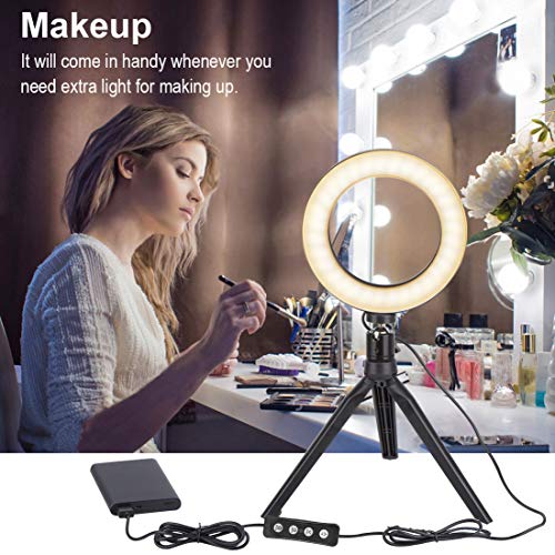 Luce ad anello da 6"con supporto per treppiedi e supporto,Mini Luce ad Anello a LED per Telecamera da Tavolo con 3 Modalità d Illuminazione e 10 Livelli di Luminosità per Foto/Video di YouTube (6")