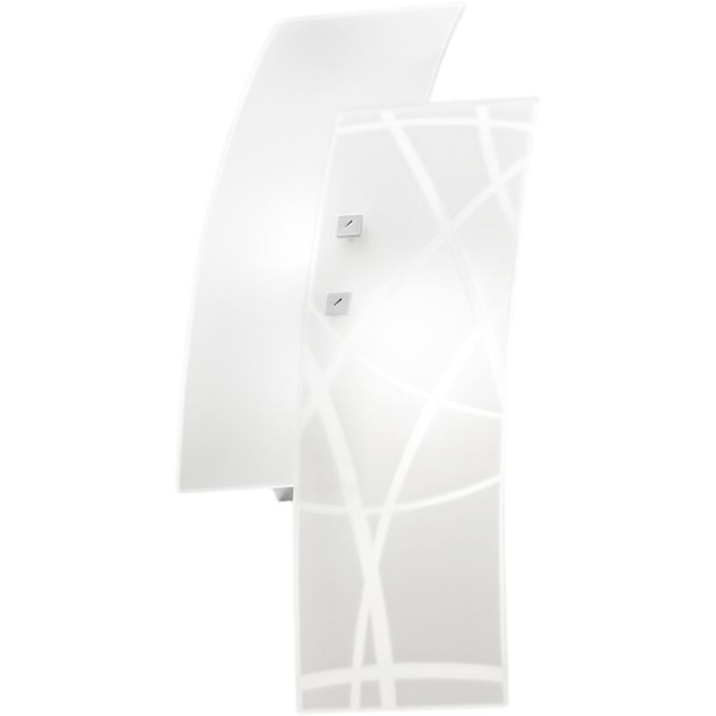 Applique in stile moderno delle dimensioni di 18x46 cm con montatura in metallo e finitura in cromo, vetri satinati e colorati in bianco.Questa applique moderna si affaccia in tutto il suo stile esibendo geometrie, sovrapposizioni e disegni lineari mantenendo la luce sempre e solo come vera protagonista. 2xE14 Potenza max 2x42W Alimentazione 220-240V Grado di protezione IP20 Colore: Bianco Area di installazione: Interna