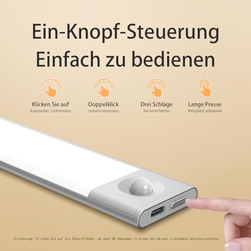 【Dimmerabilità】- Le luci LED per armadi con sensore di movimento possono regolare la luminosità in modalità di illuminazione continua e sensore di movimento. Luci per armadietti a tenuta singola luminosità regolabile. La luminosità del mobile da cucina può essere regolata in modo continuo da una luce ambiente confortevole a un vero e proprio abbagliamento.