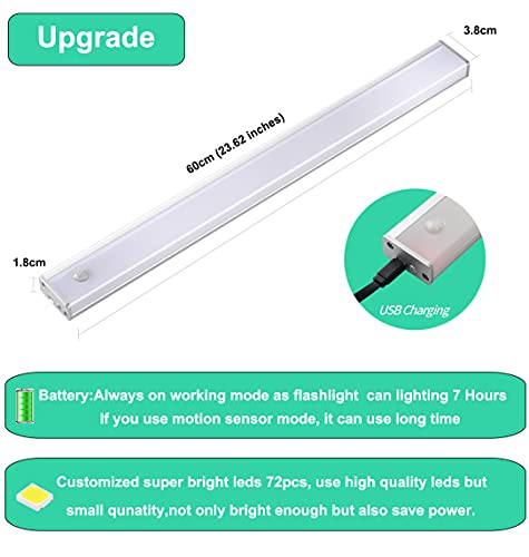 【FUNZIONAMENTO DURATURO E RICARICABILE】luce armadio con sensore ricaricabile,Non servono batterie (si risparmiano tempo e denaro). La batteria integrata ricaricabile (ad alta capacità, 2400mAh), può funzionare ininterrottamente per fino a 4 ore a piena carica, che si può caricare comodamente da un qualunque dispositivo USB a 5V (come un adattatore USB, una power bank, un computer).