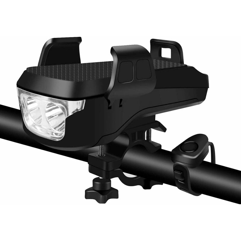 Su questo articolo [Modalità di illuminazione multipla] Luce per bicicletta con 3 modalità, luce forte, luce scarsa e luce stroboscopica. 3 super luminose LED luci, in grado di fornire un'emissione super luminosa luminosa di 400 lumen e una lunghezza del fascio fino a 300 piedi. La luci per bici super luminosa garantisce una guida sicura di notte. Il clacson è esterno ed è installato vicino al faro, puoi premiere il clacson in qualsiasi momento. Il volume di 130 dB è abbastanza alto da ricordare efficacemente ai passeri o ai veicoli di evitare incidenti. . Può essere ricaricato dal tuo computer o da qualsiasi dispositivo dotato di porta USB. La base per cellulare da bici può essere utilizzata anche per caricare telefoni cellulari e altri dispositivi USB. (Promemoria: è meglio caricare completamente il supporto del telefono per bicicletta prima di caricare il telefono.) [Indicatore di alimentazione] Questo è un indicatore di alimentazione a 4 segmenti accanto al pulsante del telefono.