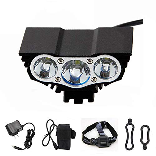 Luce per bicicletta gufo, faro 6600Lm Torcia elettrica per bicicletta Cree x3 a led torcia nera, con batteria 4x18650 6400mAh (3 T6, nero) [Grado di energia A]