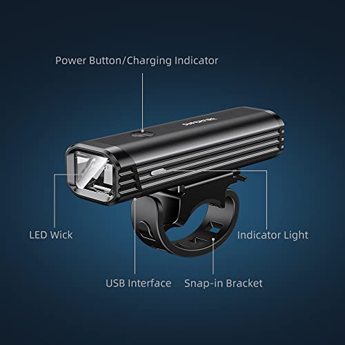 Luce bicicletta LED ricaricabile USB, 600 lumen, 2000 mAh, potente luci per bicicletta, 4 modalità, impermeabile, luci di sicurezza per ciclismo di montagna e strada