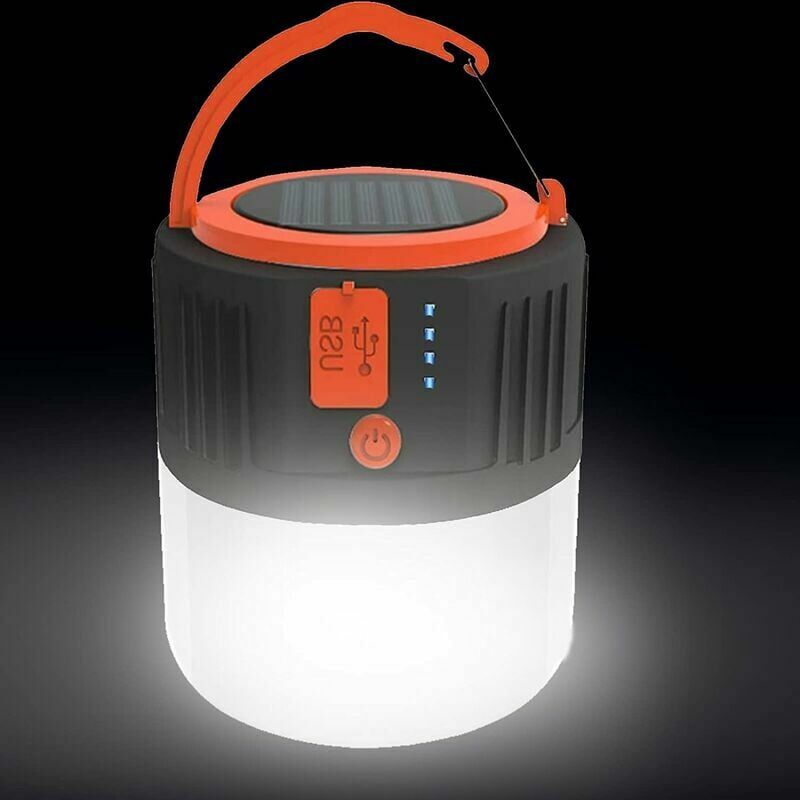 RICARICA SOLARE E USB - La batteria integrata agli ioni di litio da 1200 mAh consente di ricaricare la lanterna tramite energia solare o USB. La lanterna offre due metodi di ricarica per mantenere la luce della lanterna a LED accesa più a lungo. La lanterna da campeggio può anche essere caricata come power bank tramite la porta USB dei tuoi telefoni o altri dispositivi 【Lanterna solare multifunzionale e facile da usare】 Luce forte, luce media, luce debole, luce SOS lampeggiante veloce, luce SOS lampeggiante lenta e veloce;