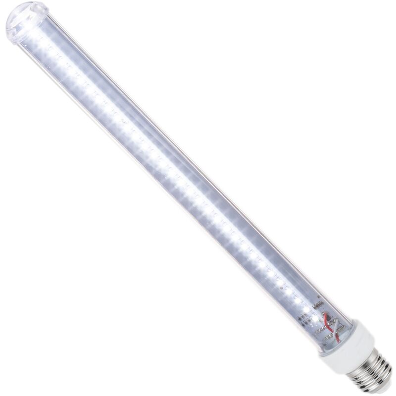 Connettore standard E27. CARATTERISTICHE: Luce decorativa bianca fredda che produce un effetto cascata o pioggia di meteoriti. IDEALE: è ideale per la decorazione di Natale, matrimoni, eventi, feste, ristoranti, giardini, terrazze, ecc. DESIGN: Lampadina realizzata in tubo di PC trasparente lungo 30 cm. NOTA: L'effetto luminoso non è programmabile o dimmerabile. MISURE: Dimensioni totali compreso filo 30 x 30 x 355 mm (larghezza x profondità x altezza).