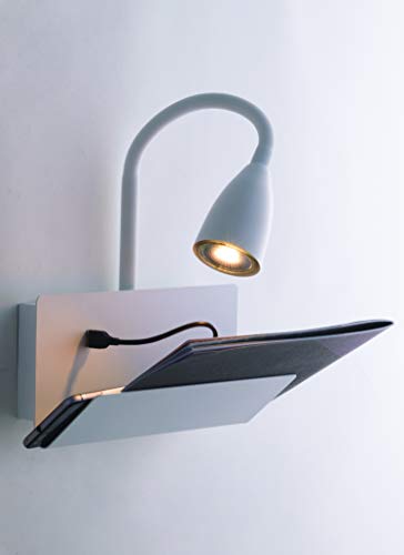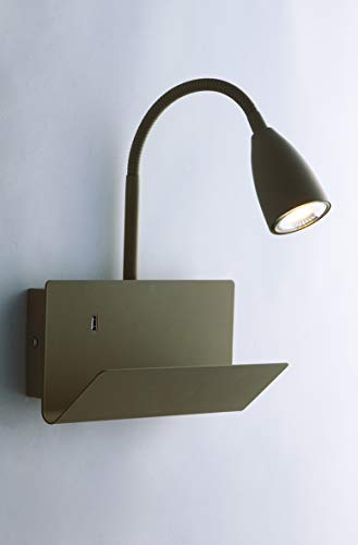 Luce Design Parete di Design Gulp con Testa Flessibile e Porta di Ricarica USB, Comodino, Lampada da Letto, Elegante e Moderna, Colore Argilla