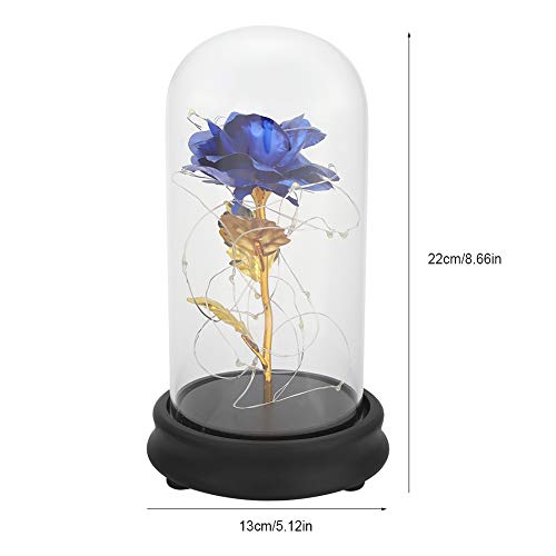 Luce LED fiore rosa placcato oro conservato Fiore rosa con base in vetro Regalo di nozze (blu)