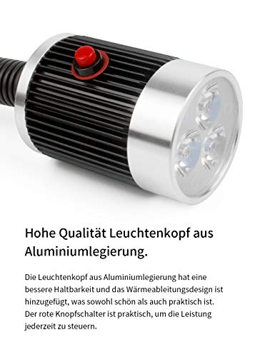 Portalampada in alluminio: il coperchio della lampada in lega di alluminio garantisce un'eccellente dissipazione del calore, antiruggine, resistenza all'usura e resistenza agli urti della lampada da lavoro. Il portalampada contiene pratici interruttori a tasto.