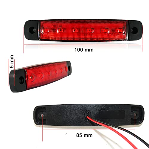 J/J 10X 24V 6 LED Luce Ingombro Rosso Per Camion Trattore Tuning Posteriore E Mark Omologati E13