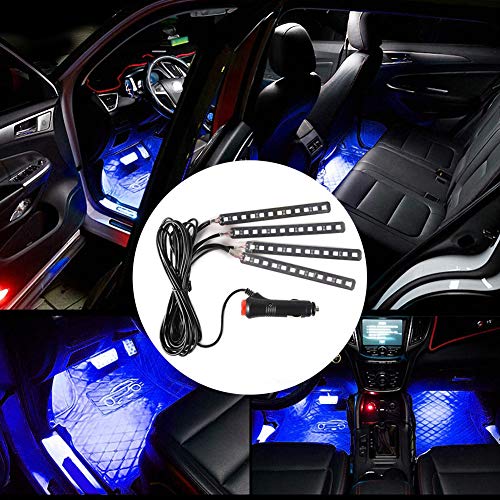 Luce interna per auto, 12V 4x 12SMD Luci per strisce LED RGB per interni auto Luce per atmosfera a piedi Telecomando(Raggio blu)