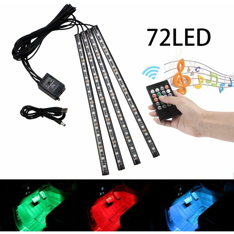4 modalità musicali, il colore può essere cambiato dalla musica. Porta USB: alimentata tramite porta USB con cavo USB con uscita 5.0V, collegalo al tuo laptop, computer, power bank, caricatore USB, caricatore per cellulare o caricatore USB per auto, per sfruttare al meglio luce. Facile da installare: 2 cavi da 1,5 m per i sedili anteriori e 2 cavi da 2 m per i sedili posteriori. Stacca il nastro biadesivo dietro ogni striscia e fissalo sotto i sedili o nell'area del pavimento. Collegalo facilmente