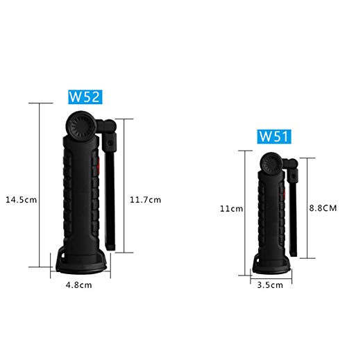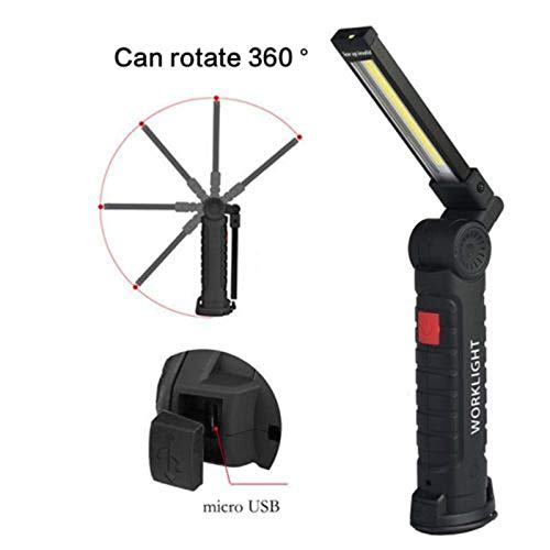5 modalità di funzionamento: lampada di ispezione super luminosa e girevole a 360 gradi, premere brevemente il pulsante per cambiare la modalità di illuminazione: alta luminosità, media luminosità, luce anteriore, luce rossa, luce stroboscopica, 5 diverse modalità di illuminazione per soddisfare le vostre esigenze di illuminazione.