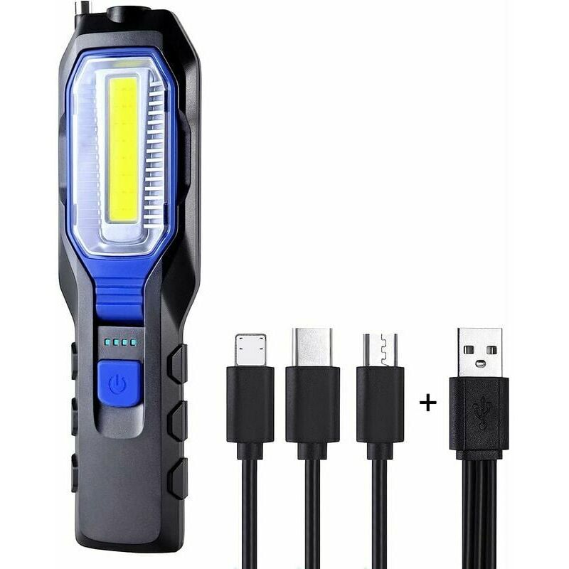 Potente luce da lavoro COB+LED - La luce COB da 3 W (280 lumen) nel corpo del dispositivo fornisce un raggio potente che può coprire un'area più ampia, mentre la luce LED da 1 W (80 lumen) sulla parte superiore fornisce un'illuminazione ultra luminosa messa a fuoco della luce che può sparare a distanze maggiori 【4 modalità di lavoro】4 modalità di illuminazione possono essere cambiate semplicemente premendo il pulsante On Off. Disponibile con luce frontale a LED, luce alta COB, luce bassa COB e strobo rosso COB per soddisfare le esigenze di illuminazione quotidiana o varie situazioni di emergenza 【Con magnete e gancio】 Con uno strumento di raccolta magnetico telescopico nella parte superiore, così puoi raggiungere oggetti metallici in luoghi lontani e stretti dove le mani non riescono a passare. Grazie al gancio ribaltabile in ABS e al potente magnete sul retro, puoi appendere o incollare la lampada da lavoro su qualsiasi superficie metallica per avere le mani libere 【Cavo di ricarica