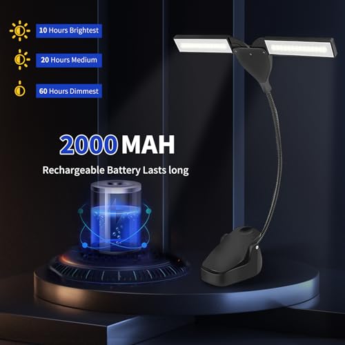 [Ricaricabile Tramite USB]: Questa è una luce per lettura a doppia testa da agganciare ad un libro per poter leggere agevolmente in ambienti scuri.2*Girevole di 90°, La luce di lettura ha una batteria integrata da 2000 mah, che può essere caricata tramite la porta usb. non è necessario sostituire la batteria, risparmiando denaro e tutelando l'ambiente. Ricaricabile in sole 2ore, può funzionare per 20.
