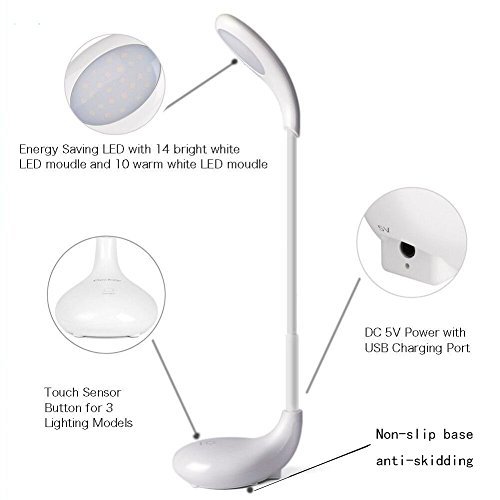 Luce di lettura del LED, YMing la lampada di lettura, USB ricaricabile, 3 modi di illuminazione, interruttore di tocco comodino luce con luminosità di protezione dell'occhio