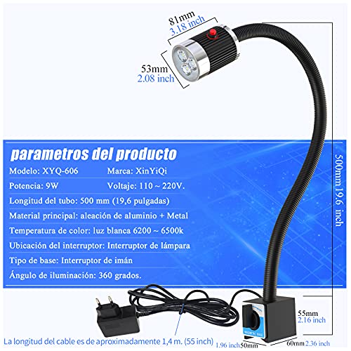 Luce magnetica a collo di cigno flessibile 900 lumen Luce di lavoro a led con base regolabile per tornio Fresatrice CNC Macchina da cucire Illuminazione industriale Macchina da macchina