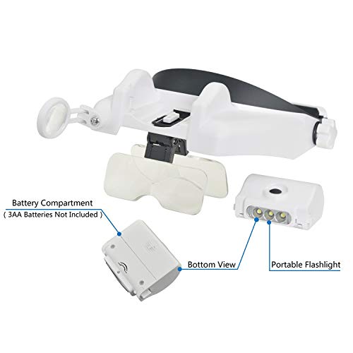 Luce LED a mani libere con fascia illuminato Magnifier visiera -1 x A 3.5 x Zoom con ingrandimento 6 staccabile lenses-headset testa montata con luci (rotondo)