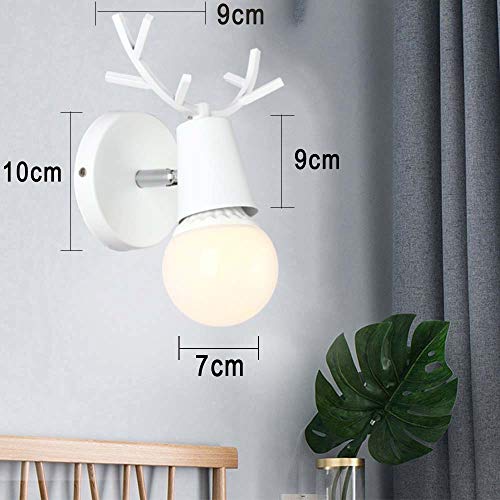 Luce a muro e27, Lampada da parete a forma di testa di cervo Creativo, Applique da Parete metallo Lampada a Muro in ferro stile retrò Per Camera da Letto dei Bambini sala da pranzo, Bianca