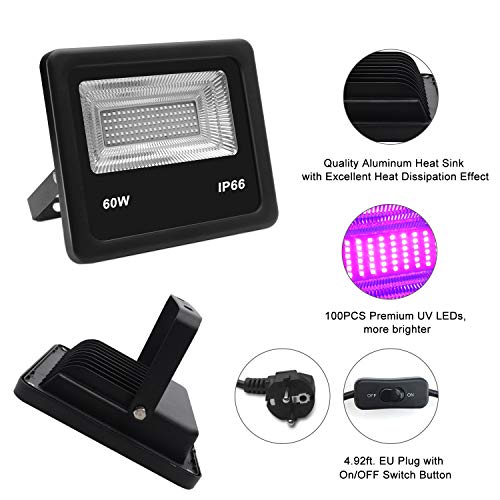 Luce Nera,Eleganted 100 Leds 60W Lampada UV,Impermeabile IP66 Luci Proiettore a LED con Interruttore ON/OFF per Festa Palcoscenico Halloween Discoteca Nozze Illuminazione (60W, UV)