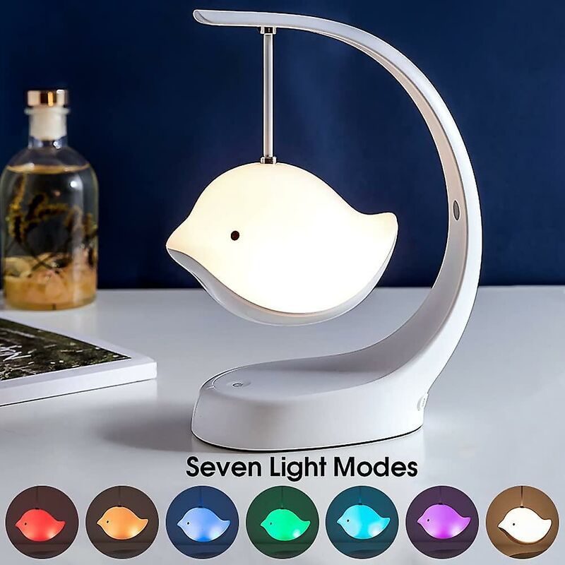 Luce notturna Bluetooth - : bellissima luce notturna a forma di uccello, dotata di funzione Bluetooth. La distanza di trasmissione Bluetooth è fino a 10 m. Puoi collegare facilmente il tuo telefono per ascoltare la tua musica preferita. [7 colori di luce] La luce notturna ha sette colori di luce. Puoi scegliere di utilizzare luci e altoparlanti insieme in base alle tue esigenze. Ha pulsanti di controllo indipendenti. Di notte, i bambini possono portare le loro adorabili luci notturne a forma di uccello nella camera da letto o nel corridoio del bagno. [Tre modalità di luminosità]: la luce notturna bluetooth dei cartoni animati fornisce un'illuminazione soffusa che può essere impostata su 100% di luminosità, 50% di luminosità e 30% di luminosità per garantire un'esperienza di illuminazione confortevole di notte. Inoltre, non provoca abbagliamento e puoi scegliere la luminosità più adatta a te. [Lampada da scrivania di grande capacità integrata]: la batteria integrata da 1800 mAh è