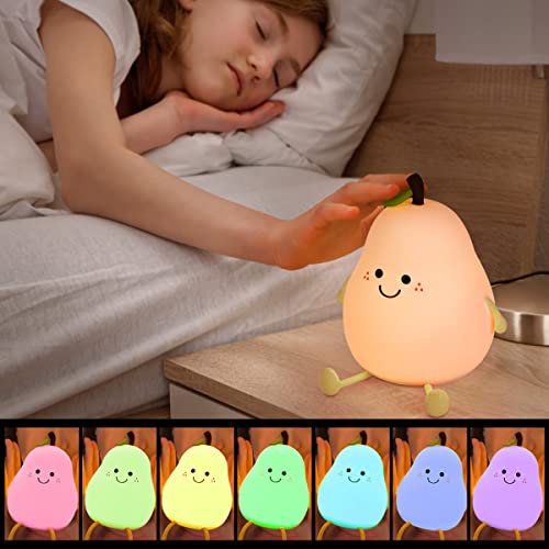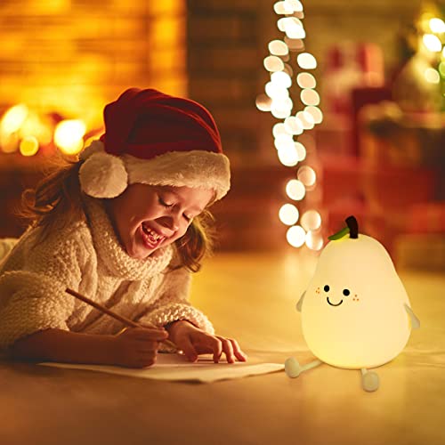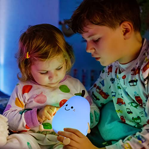 Luce Notturna Bambini, 7 Colori Lampada Notturna per Bambini Silicone Luce USB Ricaricabile Luce Notturna Bambini con Sensore Tattile and Timer per Camera da Letto di Bambini Regalo di Natale( Pera)
