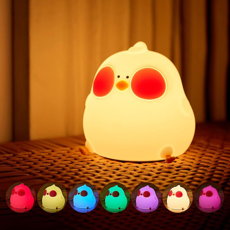 Simpatica luce notturna in silicone di pollo goo goo, materiale morbido e non tossico, resistente e facile da pulire, ogni luce notturna a led per bambini è rigorosamente testata, sicura al 100%, luce soffusa, la luce notturna per bambini protegge gli occhi. Il design arrotondato senza spigoli vivi protegge il tuo bambino da lesioni durante il gioco. 【Tap Control & Funzione di temporizzazione】 Lampada da comodino a LED ci sono due pulsanti ON/OFF per controllare l'accensione, accendere la luce e toccare la luce notturna per regolare l'intensità della luce bassa, media e alta. Passa a 30 minuti per passare alla modalità di temporizzazione e si spegne automaticamente dopo 30 minuti, Luce notturna in silicone per bambini che può fornire ai bambini sufficiente sicurezza prima di andare a dormire, Coltiva le abitudini indipendenti dei bambini. 【【Luce notturna ricaricabile】Led la luce notturna ha una batteria ricaricabile integrata da 1200 mAh per una lunga durata della batteria. La luce