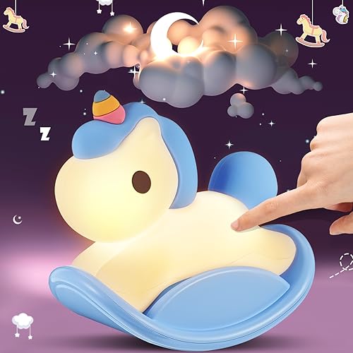 【Luce notturna a cavallo a dondolo a batteria】 La nostra luce notturna per bambini ha la forma di un simpatico cavallo a dondolo, i tuoi bambini si divertiranno con essa e può scacciare la solitudine, aiutare i bambini a fare sogni d'oro. Il corpo morbido consente ai bambini di toccare! Schiacciare! Nessuna piccola parte per mettere in pericolo i bambini. Design wireless, non è necessario acquistare batterie. È un regalo divertente e anche una decorazione per la stanza più carina!