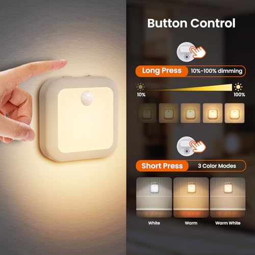 [Dimmerazione Continua] -La luce notturna con presa adotta la tecnologia di attenuazione continua. Se lo desideri, puoi regolare la luminosità della luce notturna dal 10% al 100% premendo a lungo il pulsante in alto (☀). La luce soffusa protegge i tuoi occhi.