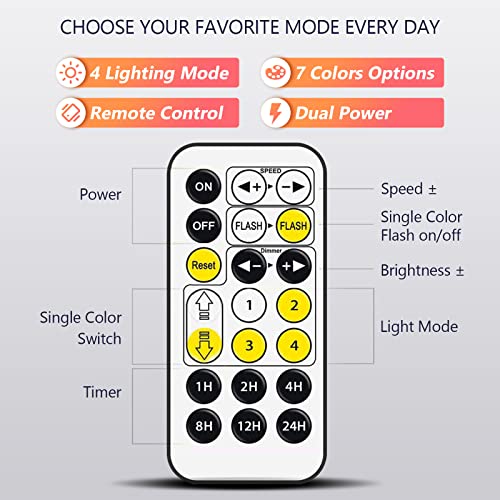 ✨ ♥ 【7 colori cambiano】 Rendi più divertente: rosso - verde - blu - giallo - ciano - rosa - bianco - tutti i colori lampeggiano a turno. Usa il telecomando per cambiare i diversi colori della luce notturna o la modalità colori lampeggianti per soddisfare le tue diverse esigenze, illuminando tutta la notte con il sonno riposante.