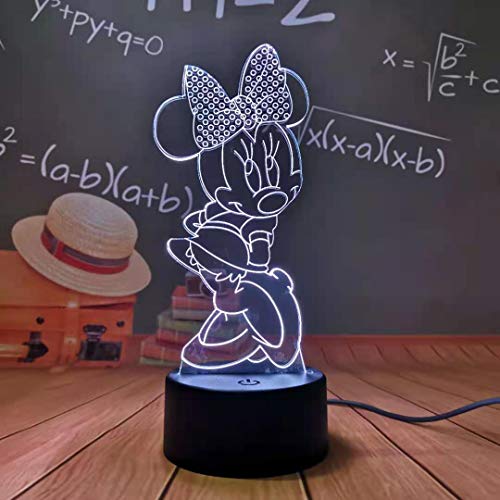 Luce notturna 3D Illusion Light LED Luminoso Cartoon Minnie Mouse Night Light RGB 7 Cambia colore USB Telecomando Lampada da tavolo da tavolo per bambini Bambini