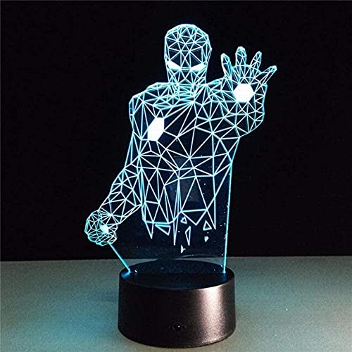 Luce notturna illusione 3D luce d'atmosfera per bambini Telecomando a 7 colori e luce regalo per le feste con pulsanti a sfioramento - Anime Iron Man
