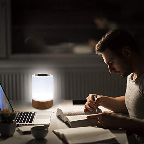 F&Y Luce notturna, lampada da comodino Smart Touch, lampada da scrivania a led batteria, lampada camera da letto (Luce bianca calda a 3 livelli regolabile e RGB a sei colori che cambia)