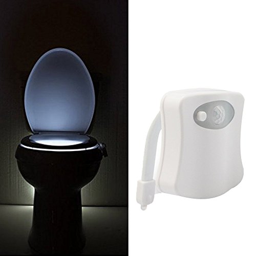 Luce notturna a LED per WC, lampada di illuminazione alimentata a batteria per bagno, con sensore di movimento, 8 colori variabili