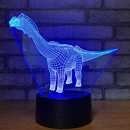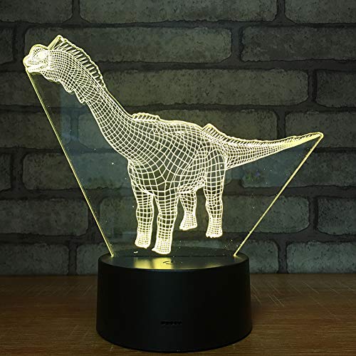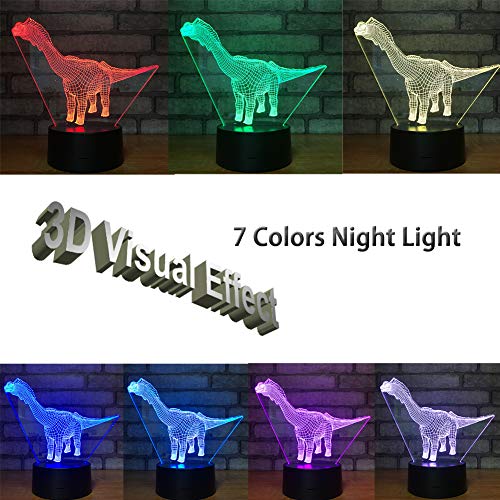 Luce Notturna,Lampada Da Illusione Ottica 3D per Bambini Lampada Da Comodino LED 7 Colori Touch Switch Ricarica USB Piatto Acrilico Ideale per Di Regali Di Compleanno (Dinosauro 1)