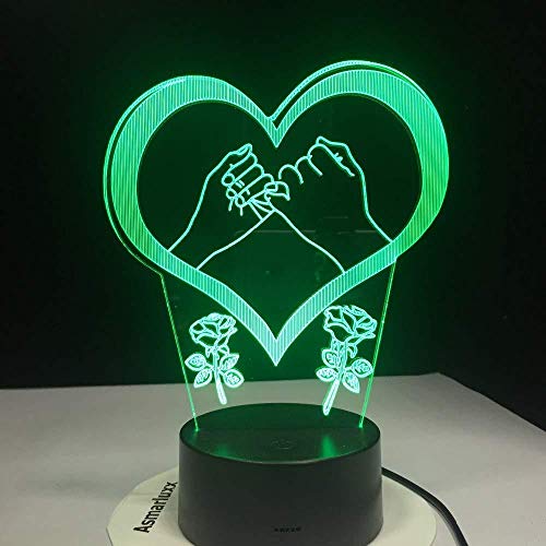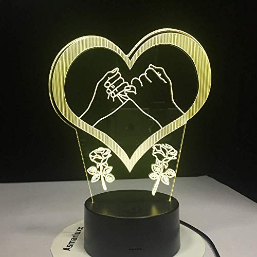 Luce notturna Lampada da notte 3D Mano nella mano Pinky Swear Promessa Amore Cuore Lampada LED 3D 7 luci notturne a colori variabili Lampada da tavolo per bambini Christm Present Love Gift