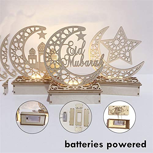 (Decorazione festiva) Fatte a mano 3d in legno con stella lunare a LED, decorazione ramadan, kit di decorazione per la casa per matrimoni, compleanni, luna piena, laurea, inaugurazione della casa, addio al nubilato o celebrazioni del festival Eid al-Fitr.
