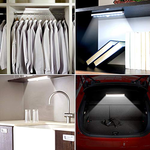 Luce Notturna a 10 Luci LED, Portatile Alimentata a Batterie Luce Notte Striscia Magnetica Adesiva Luce per Armadio Scale Corridoio Cucina Garage Auto/On/Off