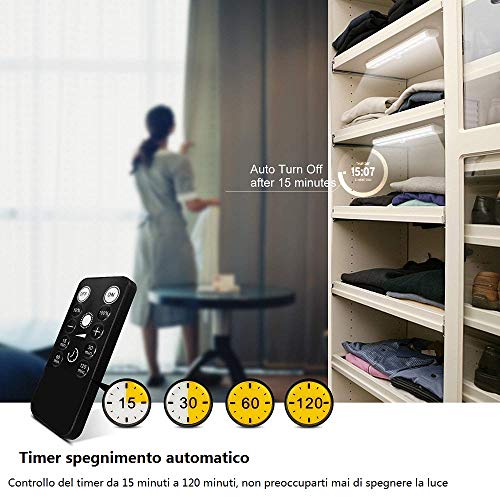 Ottieni: 3 confezioni di luci per armadio a LED, 1 telecomando wireless, 3 strisce magnetiche, manuale dell'utente, 12 mesi di garanzia e un servizio clienti cordiale.