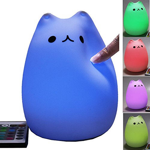 Luce notturna multicolore per bambini, con telecomando, in silicone, LED a forma di gatto, bianco caldo, 12 colori singoli/7 colori che cambiano, luminosità regolabile, ricaricabile tramite USB