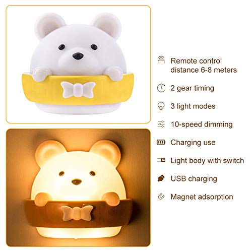 Funzione di rilevamento della luce: la simpatica luce notturna dell'orso può impostare l'ora in base alle vostre esigenze, il telecomando può attenuare e cambiare i colori e la modalità di sfumatura 3 in base alle preferenze., riducendo così il consumo di energia e risparmiando i vostri soldi
