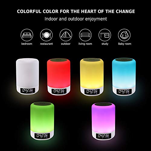 Luce notturna e sveglia con altoparlante Bluetooth, lampada da comodino con sensore Smart Touch, (Luce bianca calda a 3 livelli regolabile e RGB a sei colori, supporta Micro SD)